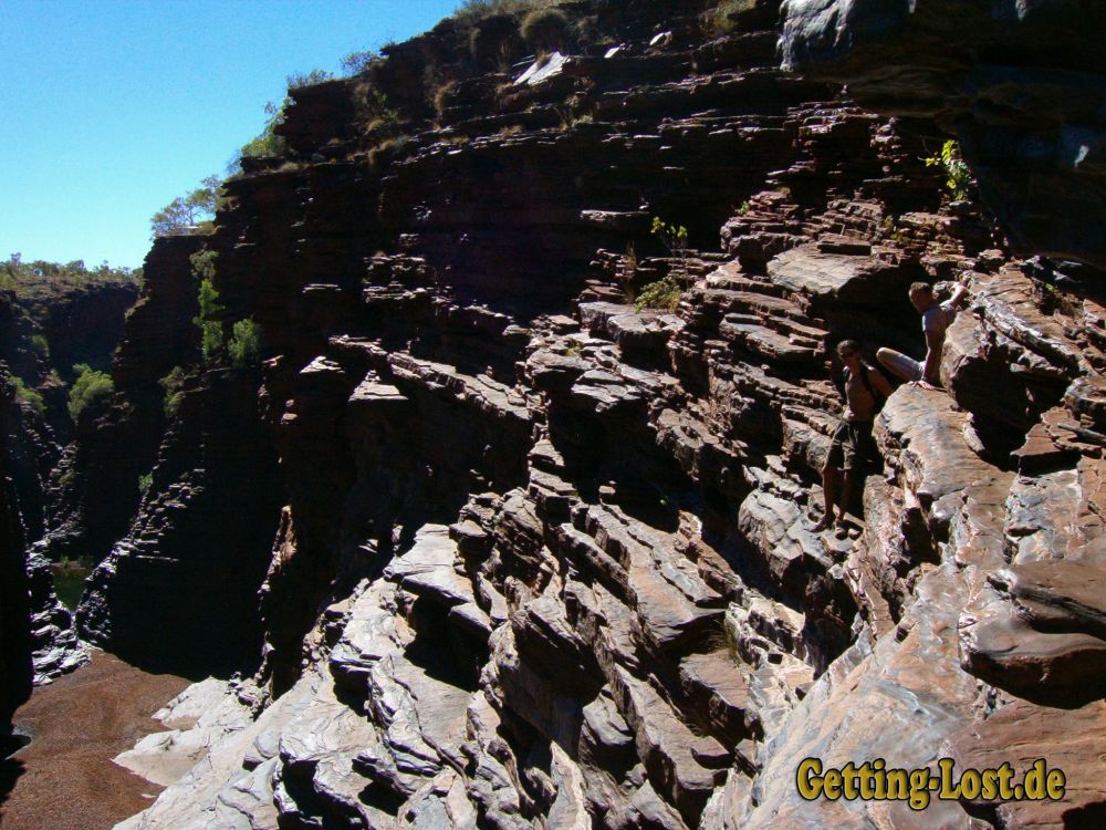 After 2 days I already left Melbourne to go to Perth. I took the Indian Pacific. This train covers a distance of 4,352 km to connect Sydney with Perth. Considering I got on the train in Melbourne, I "just" needed 3 days for the 3,500 km to Perth. I really liked Perth that is why I settled down for 4 months. I earned my money with small jobs at construction sites, bars and even at a gold mine. It was even possible to save up some money for my next trip. Gregor, who accompanied me since Gundagai, Jackie, a friend we met in Perth, and I rented a "Wicked Camper Van". This time we drove north to Darwin. It took us 4 weeks for the 7,000 km. These couple of weeks were one of the most intense experiences of my life so far. We got to see so many different scenes like breathtaking beaches, gorgeous corral reeves, hot desserts, Canyons with cool springs, the meteor crater Wolfe-Creek and a ghost town just to name some of them.